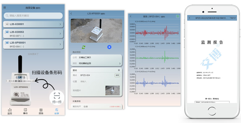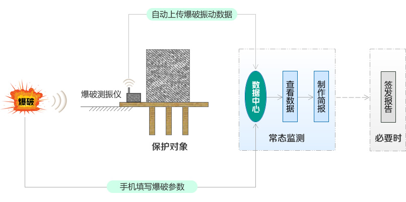 是针对爆破作业单位研制的施工振动常态化监测系统,该系统不仅能快速获取每次爆破的振动数据,为施工方案修正和优化提供科学依据;还能随时签发某次爆破的监测报告,为工程验收和可能发生的施工纠纷提供必要材料。