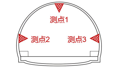 3个传感器按要求布置于顶拱与两侧壁,同时监测3个测点