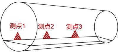 以中间测点为中心,向左右两个方向分别布置两个测点,实现3个测点同时监测